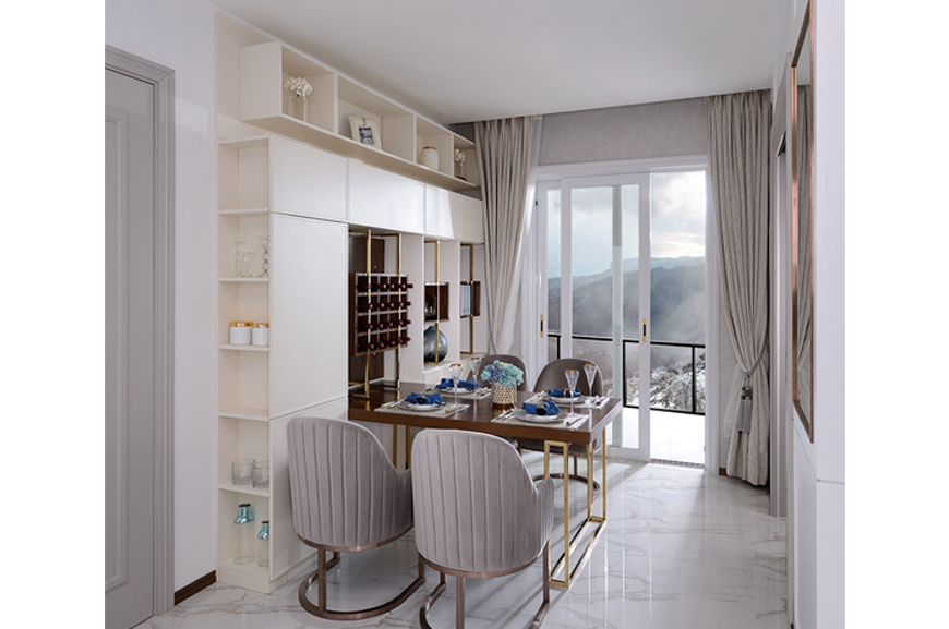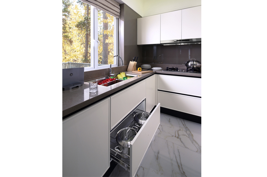 全屋现代风格家居产品由香港著名室内设计大师梁景华博士鼎力打造,纯白静谧的卡其色哑光烤漆,点缀上温暖舒适的深色木纹和金属色,淡雅、脱俗;不对称的简约布局展现出现代都市的时尚与活力。