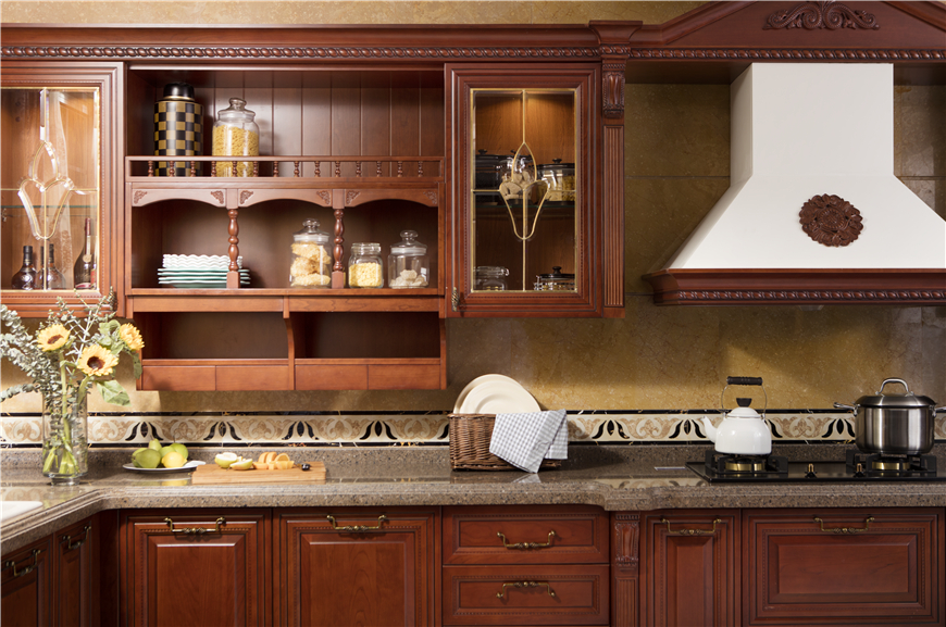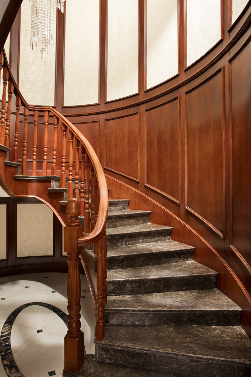 由香港著名室内设计大师梁景华博士设计。古典韵味的欧式风格,采用珍贵的北美樱桃木,纹理清晰自然,表面可以看到棕色树心斑点和细小的树胶窝,门板上运用精致的雕花装饰,搭配雅致的百叶透气设计,精心的细节工艺,如艺术品一样精美。50mm宽的装饰线非常大气,庄重,能彰显欧式风格的高贵,与其说是意大利经典风格的再现,倒不如说是现今一种品质生活方式,高端生活的象征。