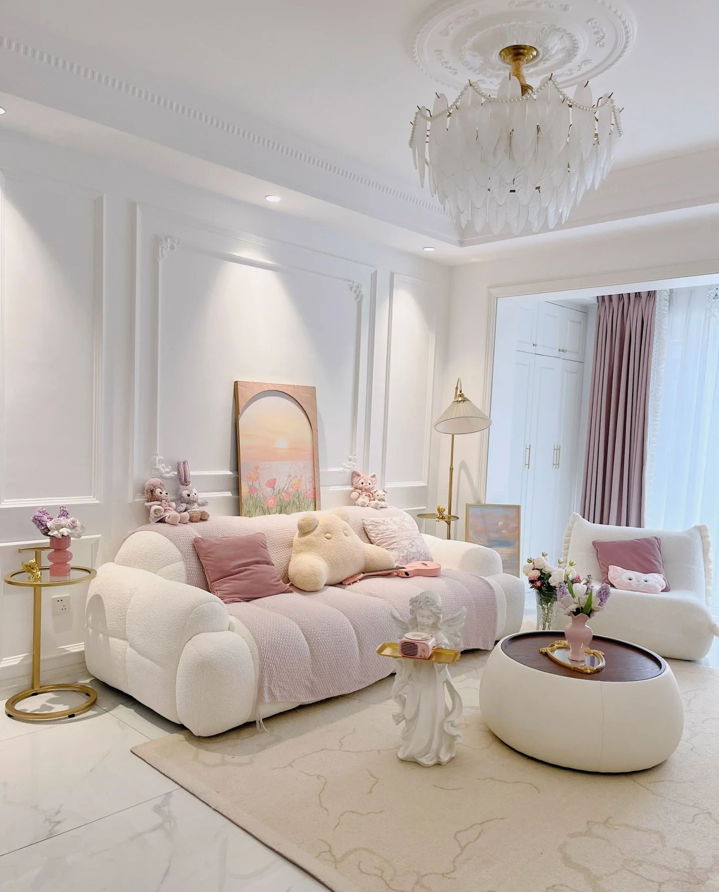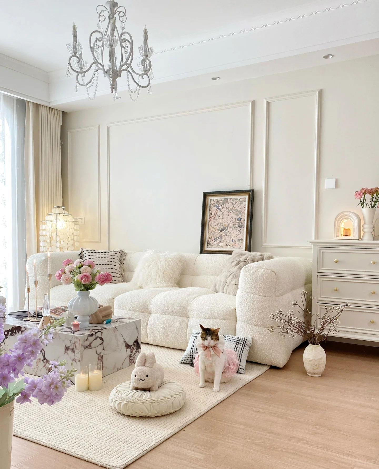 奢华的法式风格怎么能少了水晶灯的装饰呢,复古摩登的水晶灯可以让房间整体格调提升,*美观